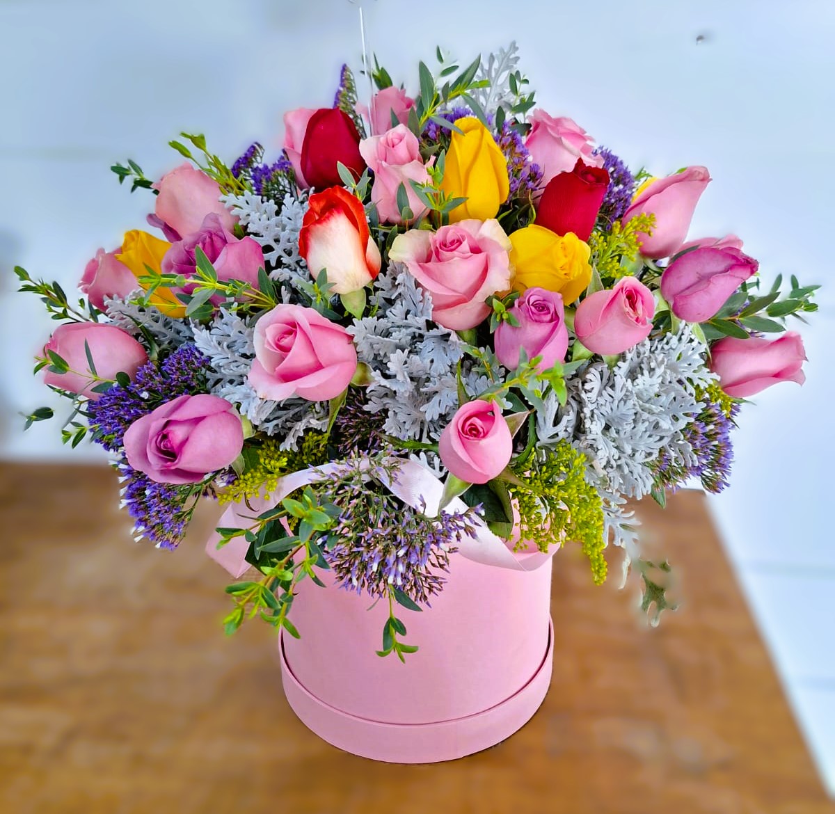 ARREGLO CON 50 ROSAS DE COLORES