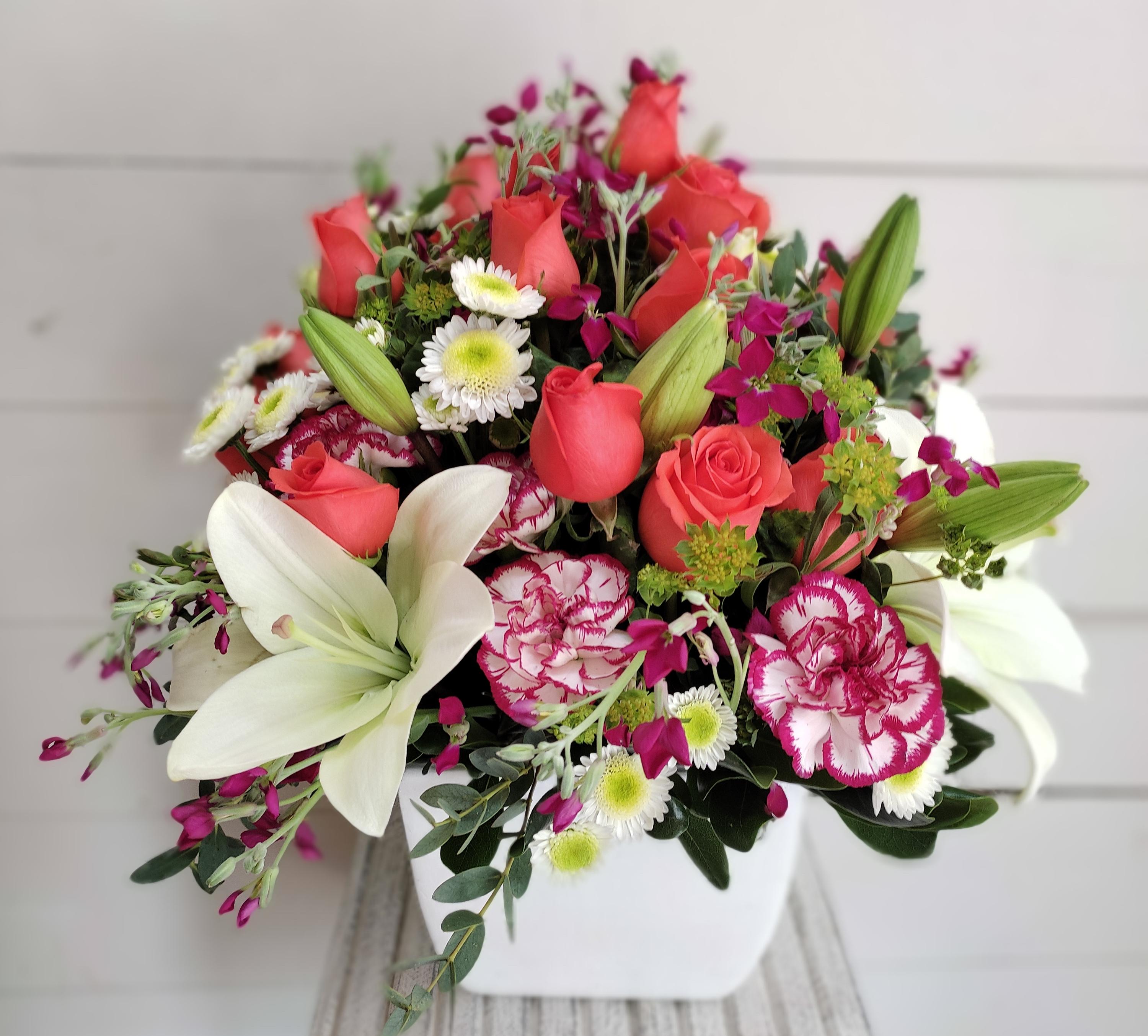 LINDO DETALLE ,CON ROSAS Y DIVERSAS FLORES DE TEMPORADA, IDEAL PARA CUALQUIER OCASION!!