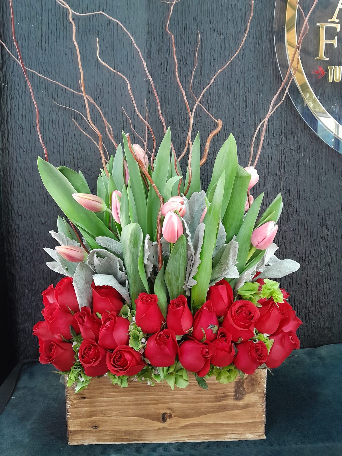 ARREGLO FLORAL CON 40 ROSAS Y TULIPANES ESPECTACULAR DISEÑO