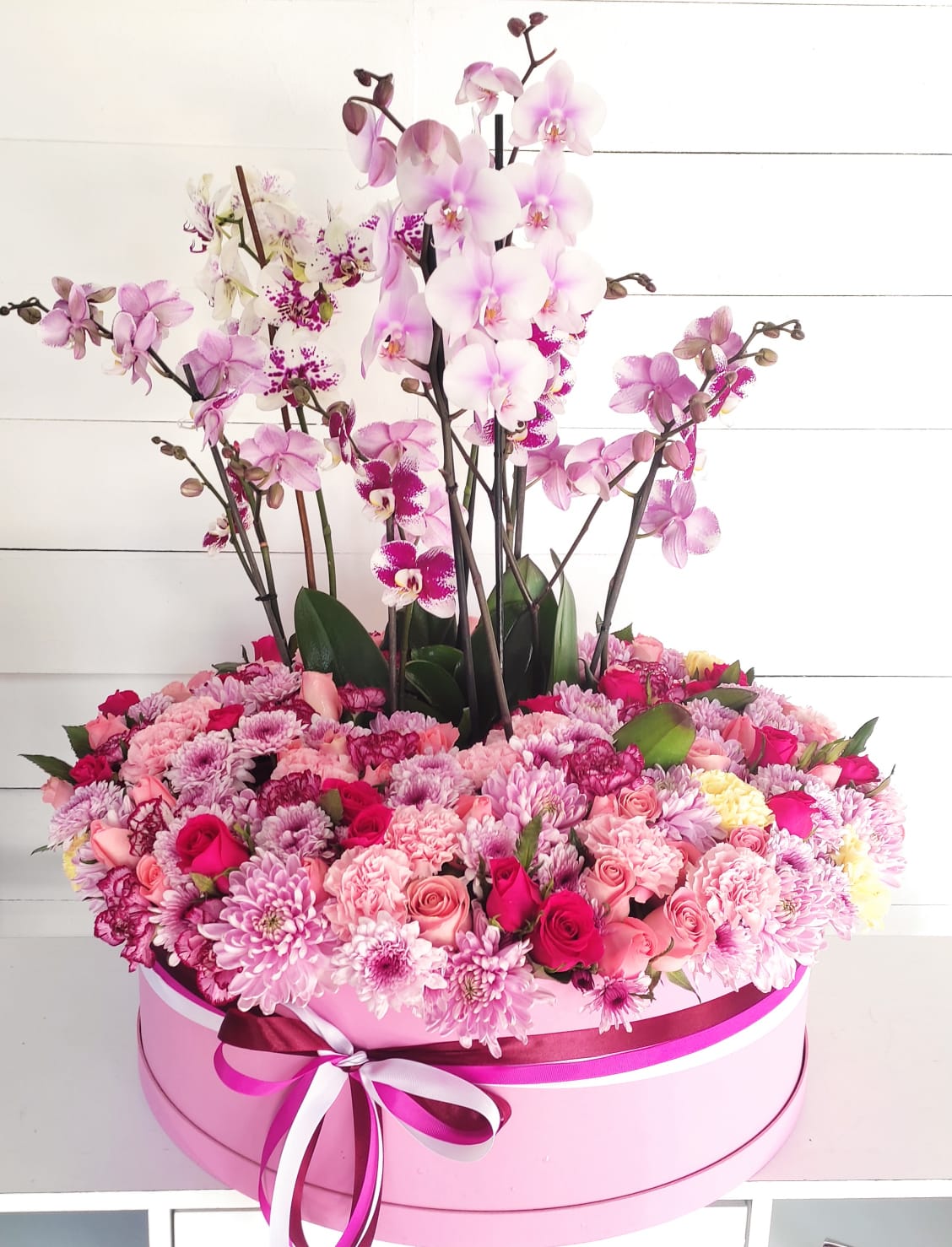 100 ROSAS CON 4 PLANTAS DE ORQUIDEAS ACOMP