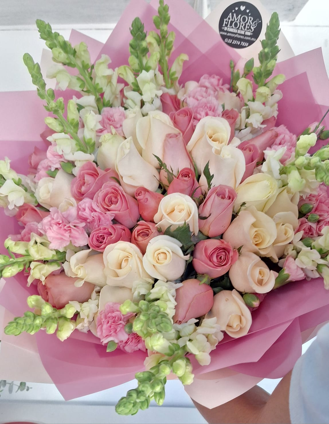 RAMO FLORAL CON 40 ROSAS Y FOLLAJE HERMOSO