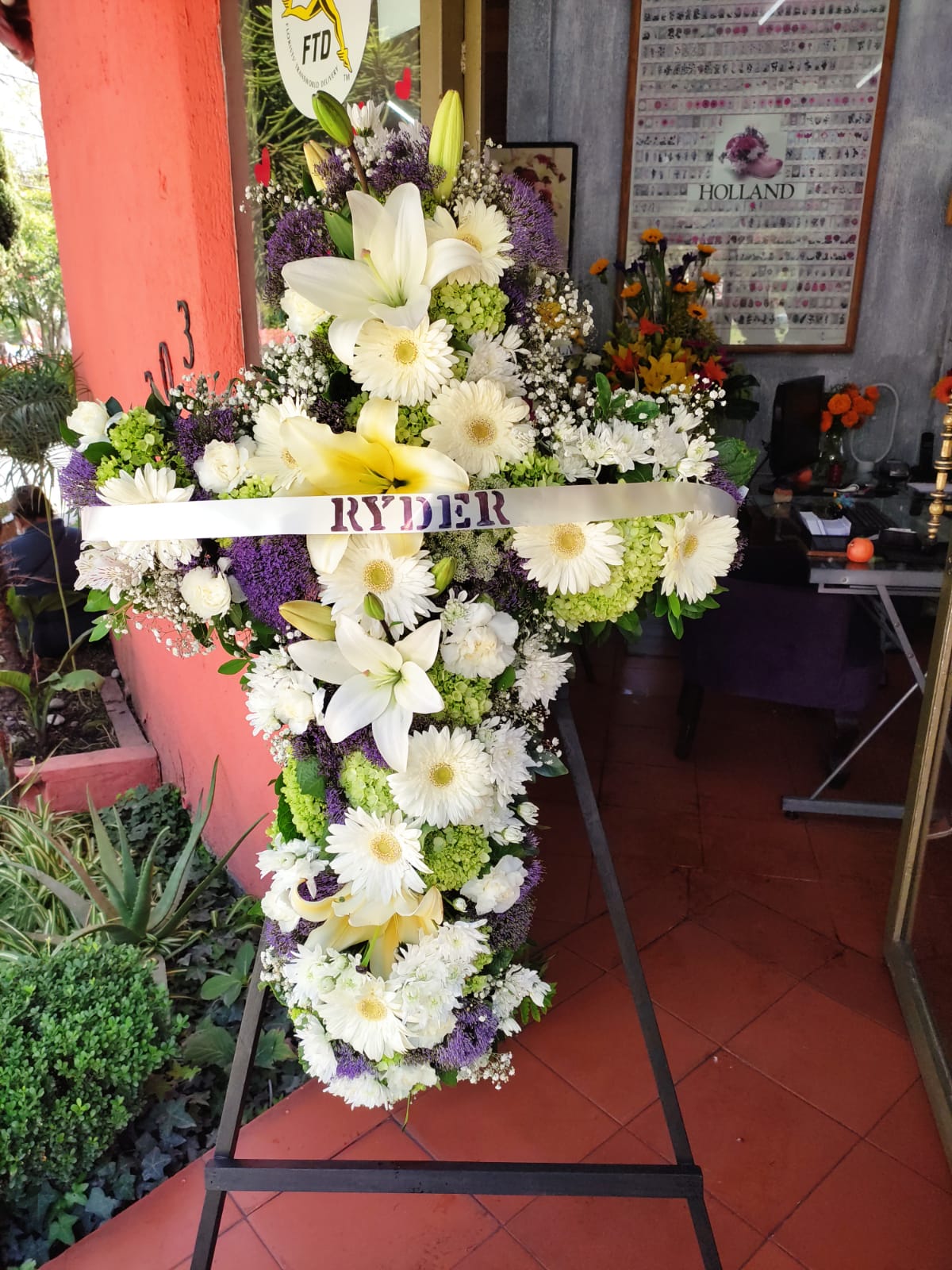 CORONA REPRESENTANDO UNA CRUZ, EL COLOR DE LAS ROSAS LAS ELIGE NUESTROS CLIENTES.