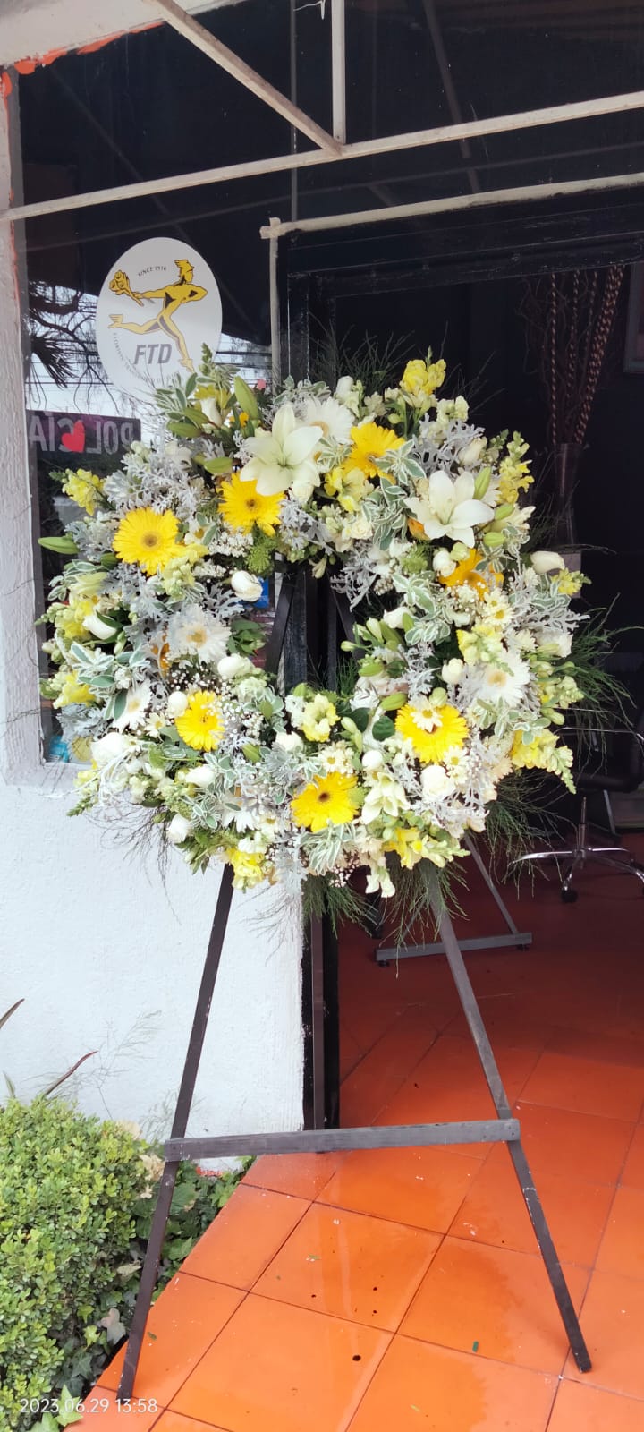 DISTINGUIDA CORONA FUNEBRE CON TRIPIE, ELEGANTES FLORES Y DISEÑO PARA DECIRLE QUE ESTÁS CON ÉSA PERSONITA ESPECIAL EN LOS MOMENTOS DIFÍCILIES.