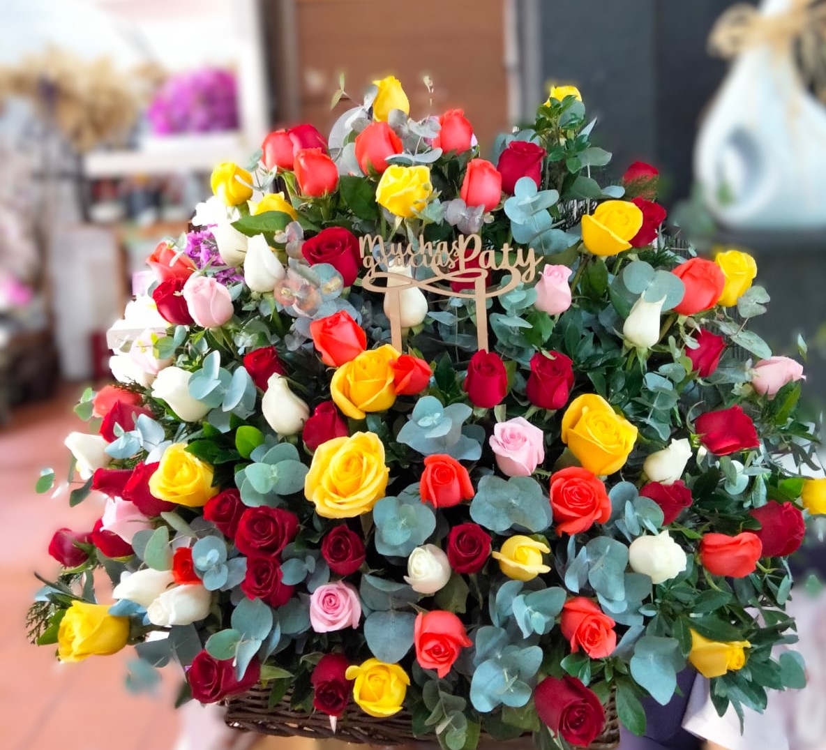 Arreglo floral con 100 rosas de colores