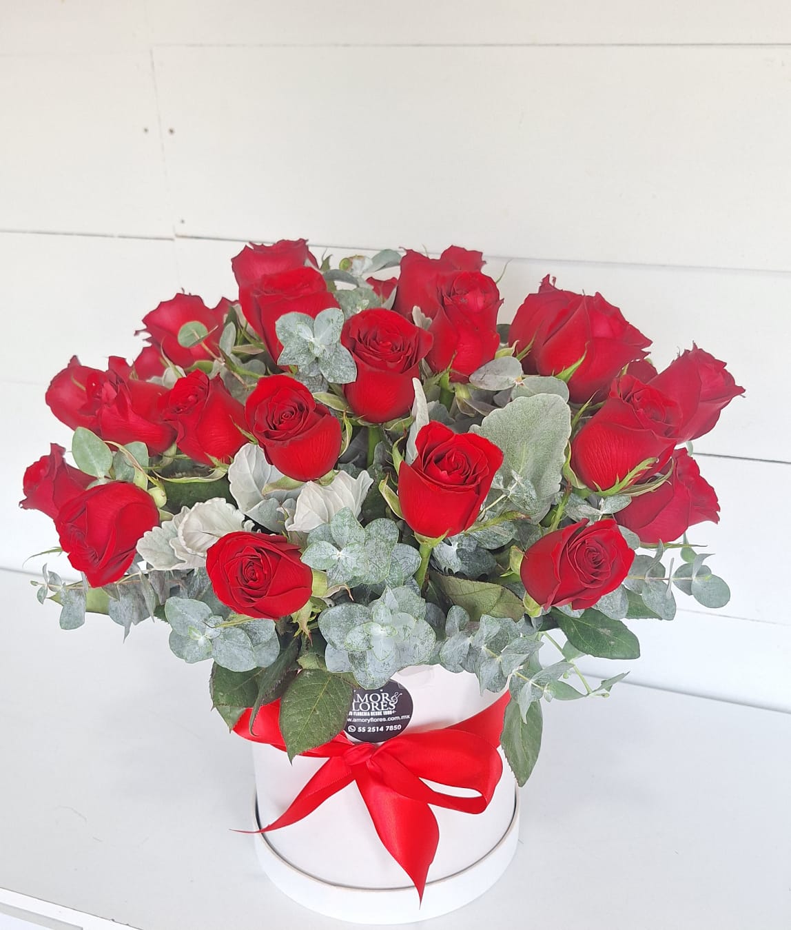 Caja floral con 24 rosas rojas