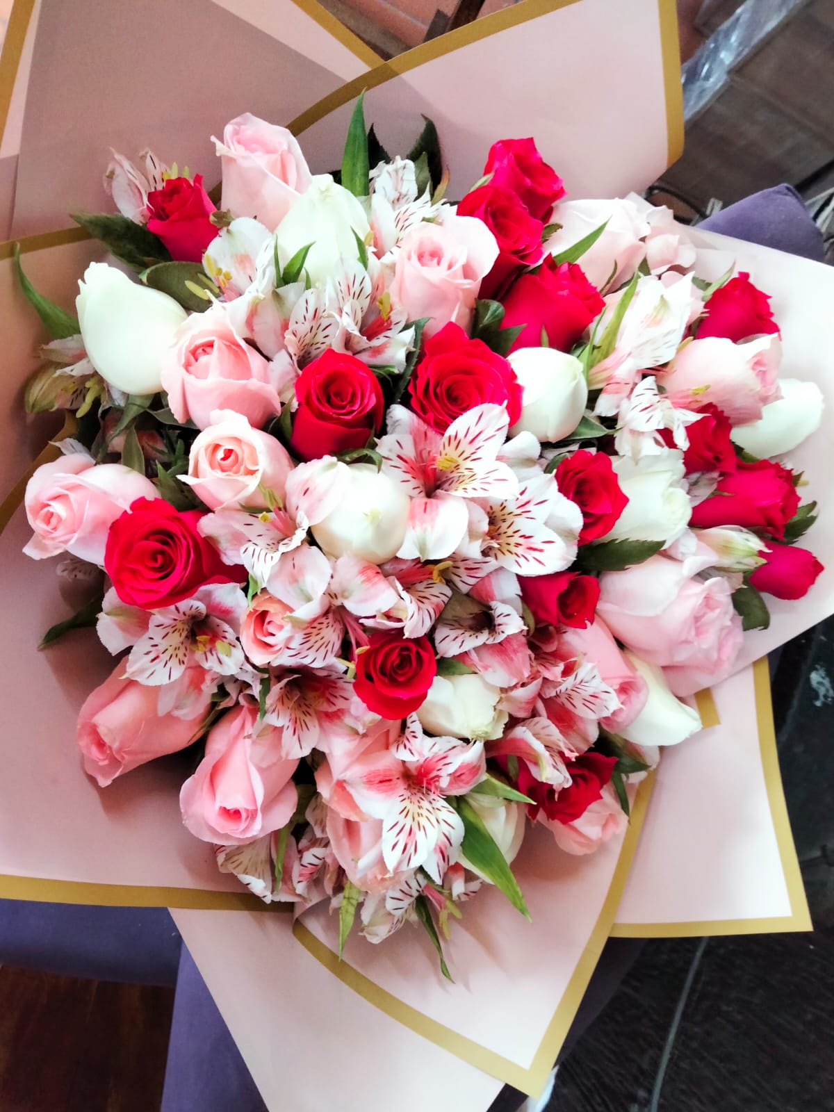 RAMO FLORAL CON 40 ROSAS Y ASTROMELIAS