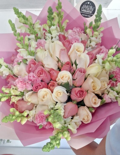 RAMO CON 40 ROSAS Y HERMOSOS CLAVELES