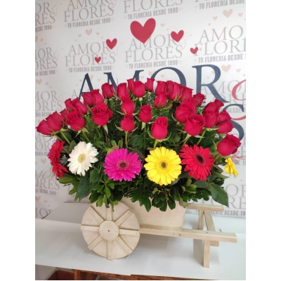 Arreglo floral en carreta con 80 rosas