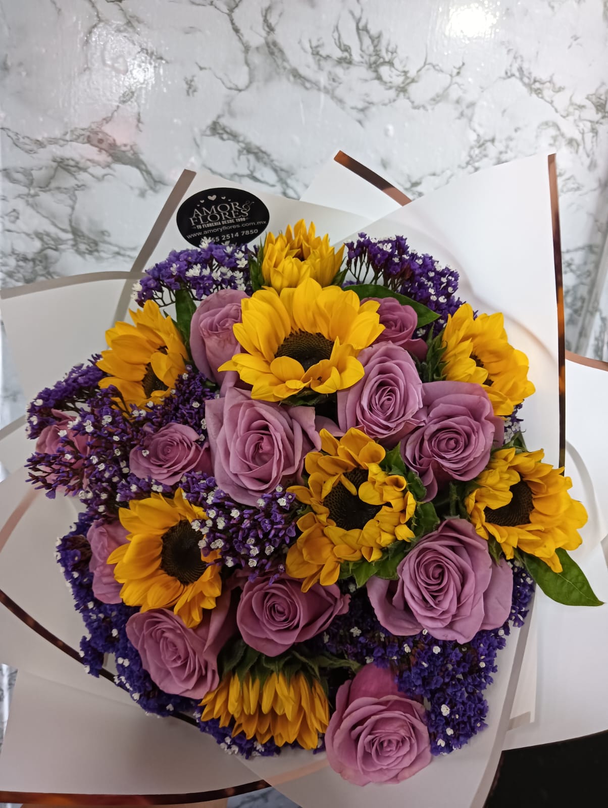 Ramo floral con girasoles y rosas