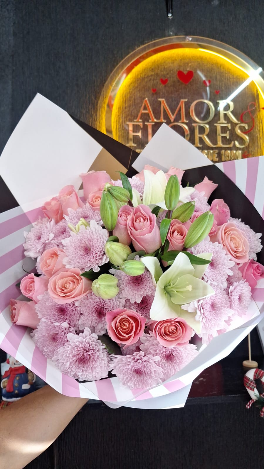 RAMO FLORAL CON ROSAS Y MARGARITAS