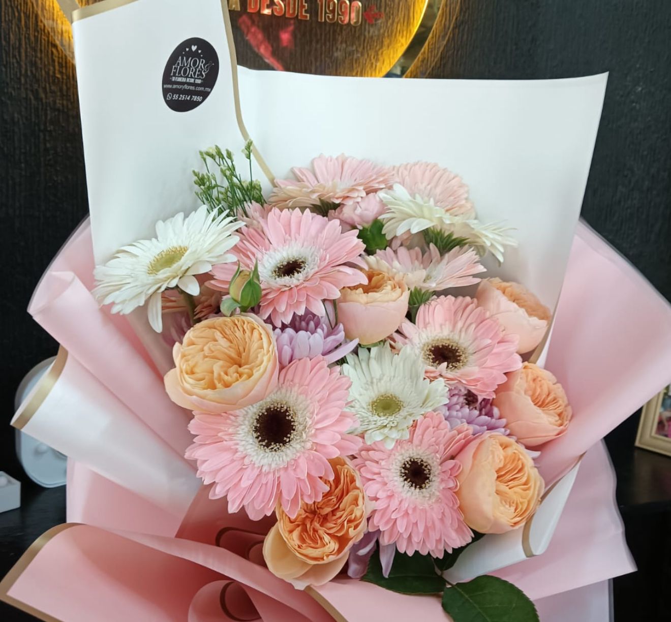 RAMO CON ROSAS INGLESAS Y GERBERAS