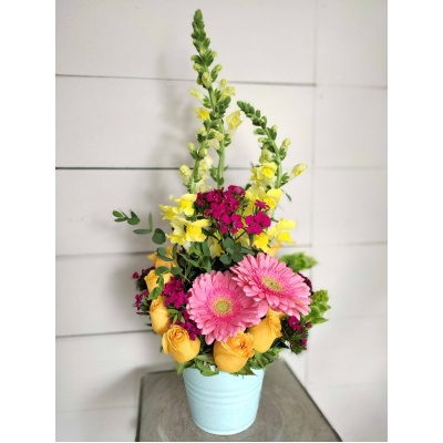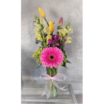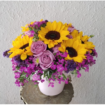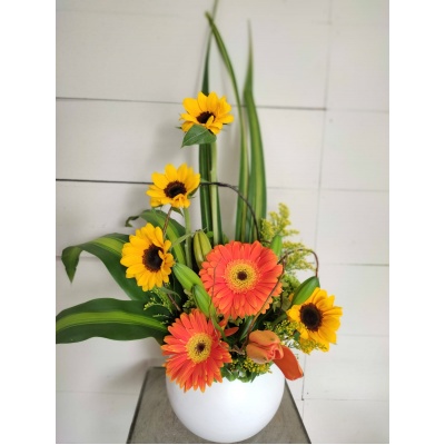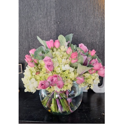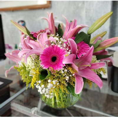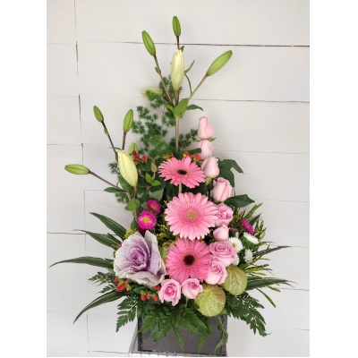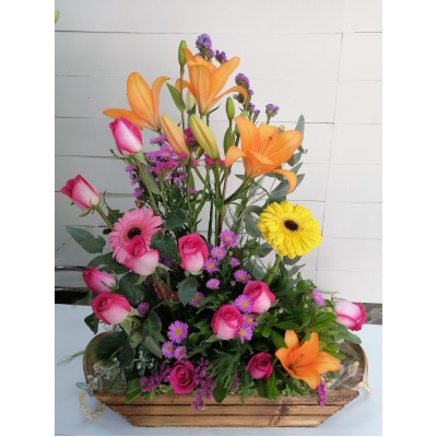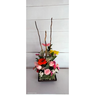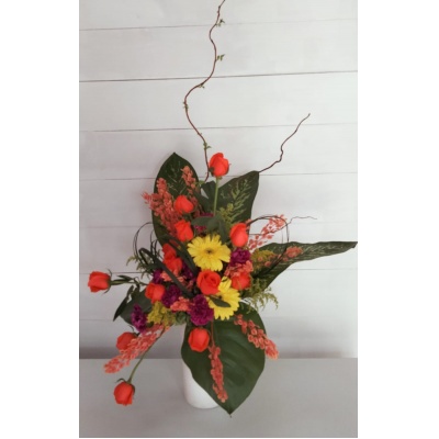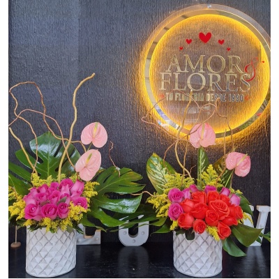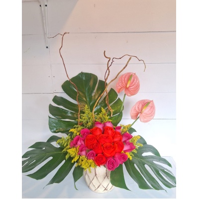 ARREGLO EXOTICO CON ANTURIOS Y ROSAS