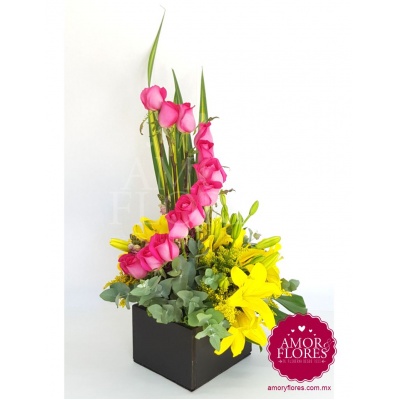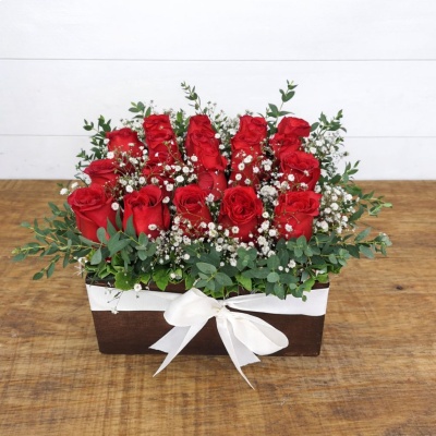 HERMOSA CAJA FLORAL CON 20 ROSAS
