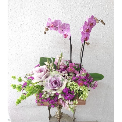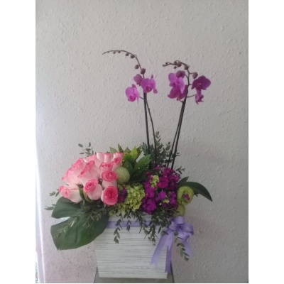 ARREGLO DE ORQUIDEAS CON ROSAS Y LECHUGAS