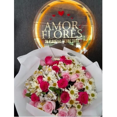 RAMO DE 24 ROSAS CON MARGARITAS