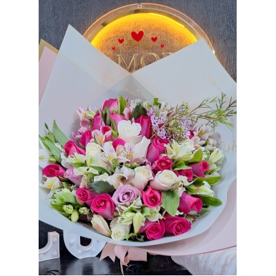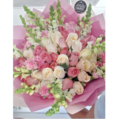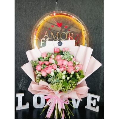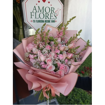 RAMO FLORAL CON 36 ROSAS HERMOSAS ACOMPAÑADAS DE ROSAS BABY