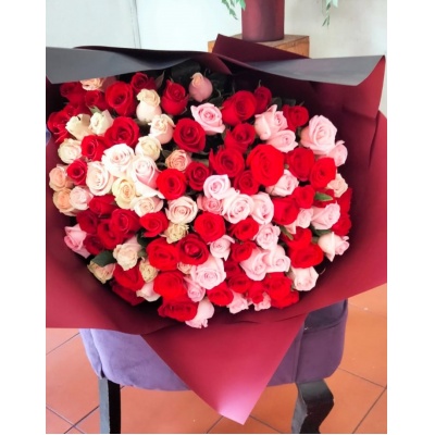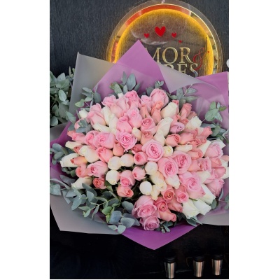 RAMO FLORAL CON 100 ROSAS DE DOS TONOS