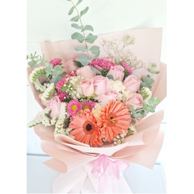 RAMO FLORAL CON ROSAS Y GERBERAS