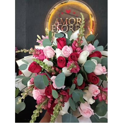RAMO FLORAL CON 30 ROSAS COMBINADAS DISEÑO FLORAL