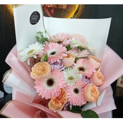 RAMO CON ROSAS INGLESAS Y GERBERAS
