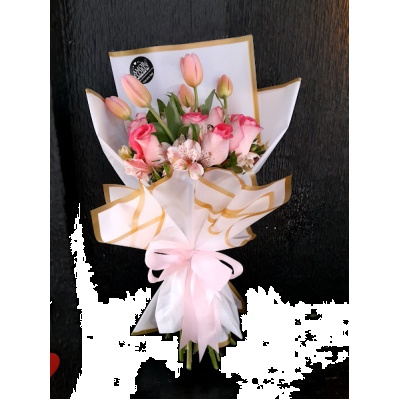RAMO FLORAL CON 5 TULIPANES Y ROSAS