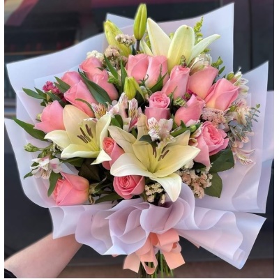 RAMO FLORAL CON 20 ROSAS Y LILIS