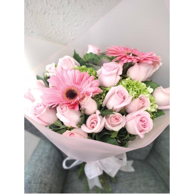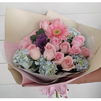 15 ROSAS ACOMPAÑADAS DE HORTENSIAS Y GERBERAS