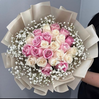 RAMO DE 24 ROSAS PASTELES