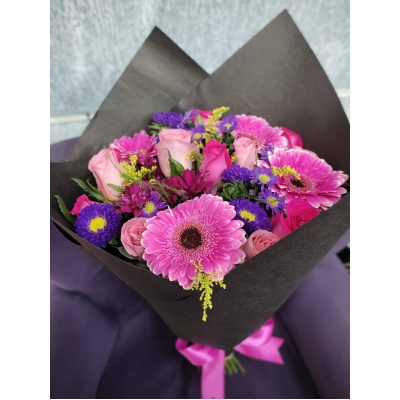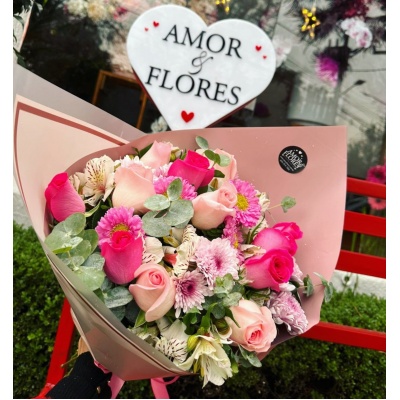 HERMOSO RAMO CON 12 ROSAS COMBINADAS CON OTRAS FLORES