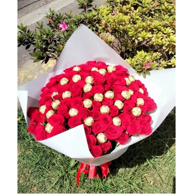 DULCE RAMO CON 100 ROSAS Y CHOCOLATES