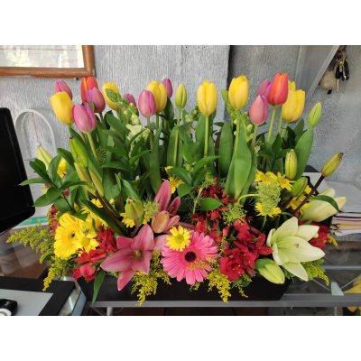 20 TULIPANES ACOMPAÑADOS DE DIVINAS FLORES