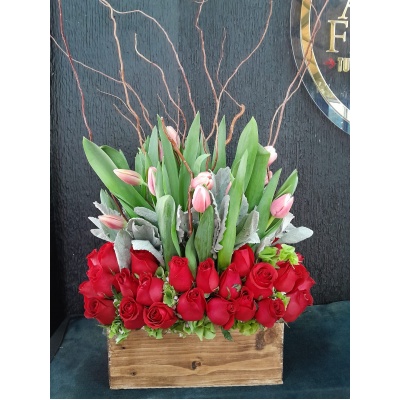 40 ROSAS CON 10 TULIPANES AL CENTRO